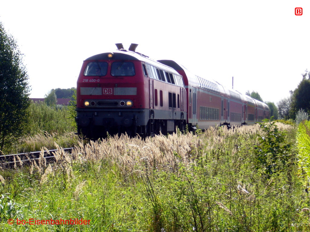 218 400 verlässt am 29.08.2009 Dorfen mit RB 27055 in Richtung Mühldorf