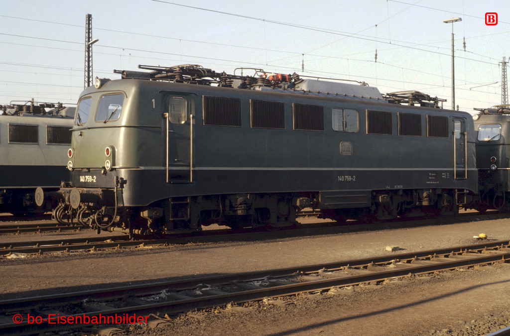 140 759 am 11.05.1980 im Bw Seelze mit dem zusätzlich zur BD/Bw-Angabe angegebenem Einsatz-Bw Bremen Rbf am Rahmen.